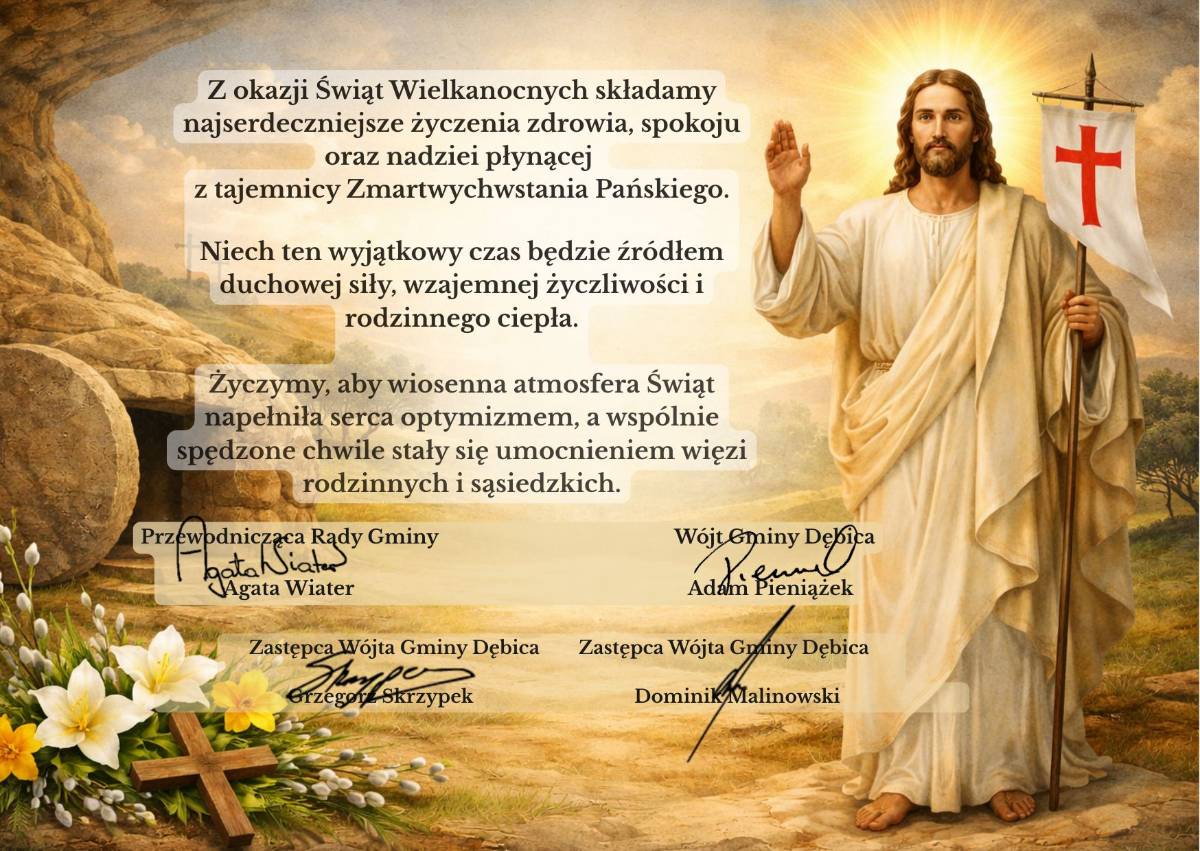 Z okazji Świąt Wielkanocnych składamy najserdeczniejsze życzenia zdrowia, spokoju oraz nadziei płynącej z tajemnicy Zmartwychwstania Pańskiego.