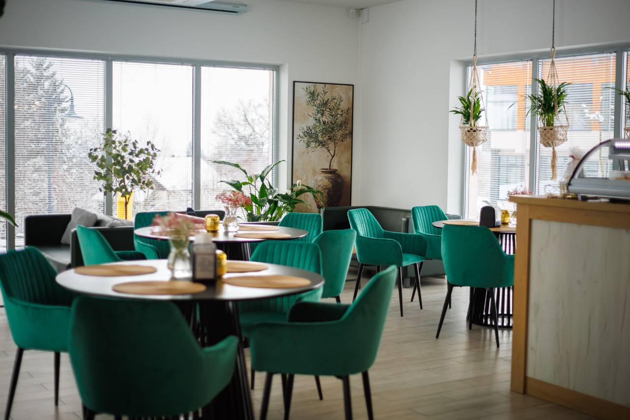 Tu serwujemy: pyszne ciasta, świeże sałatki oraz aromatyczną kawę.